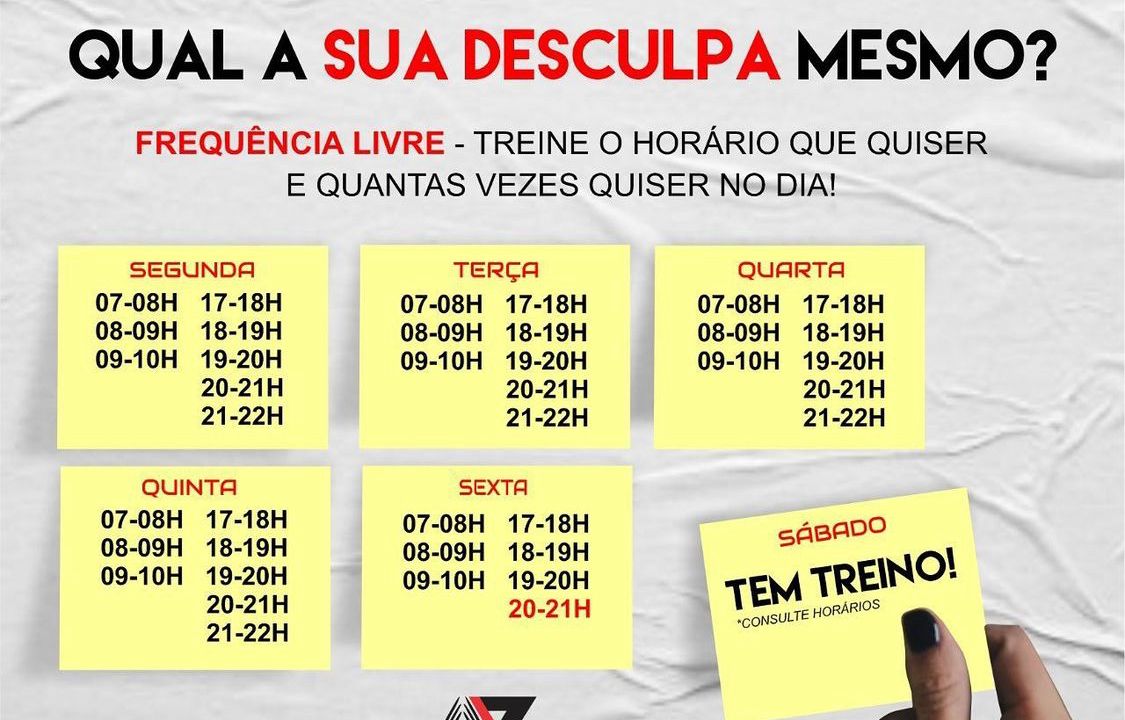 Todas as informações são fornecidas pela academia parceira e a TotalPass não tem qualquer responsabilidade sobre informações incorretas. Caso hajam dúvidas, entrar em contato diretamente com a academia.
